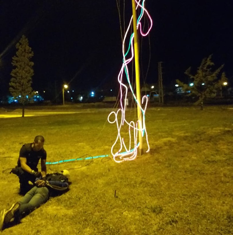 Efectivos policiales de Puerto Madryn, aprehendieron, en la noche del pasado lunes, a un hombre de 35 años y oriundo de Buenos Aires que dañaba un árbol lumínico de Navidad instalado por la Municipalidad de Puerto Madryn en la intersección de la Avenida del Trabajo y 20 de Junio de esa ciudad.
