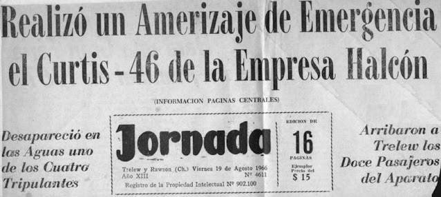 El 17 de c, un avión bimotor carguero perteneciente a la compañía comercial Aerovías Halcón, se extraviaba en la penumbra de la costa patagónica. La aeronave cubría el trayecto entre Río Grande, Tierra del Fuego y el aeropuerto de Ezeiza. Luego de una escala técnica en Río Gallegos, tuvo inconvenientes y perdió el contacto radial con Comodoro Rivadavia. La máquina volaba a la altura de Camarones, en Chubut, A las 18:10 del 17 de agosto, la torre del aeropuerto de Trelew, perdió contacto con la tripulación del Curtiss que ya había comunicado que viajaba con un motor en “bandera” y el otro fallando, lo que determinaba su pérdida de altura.