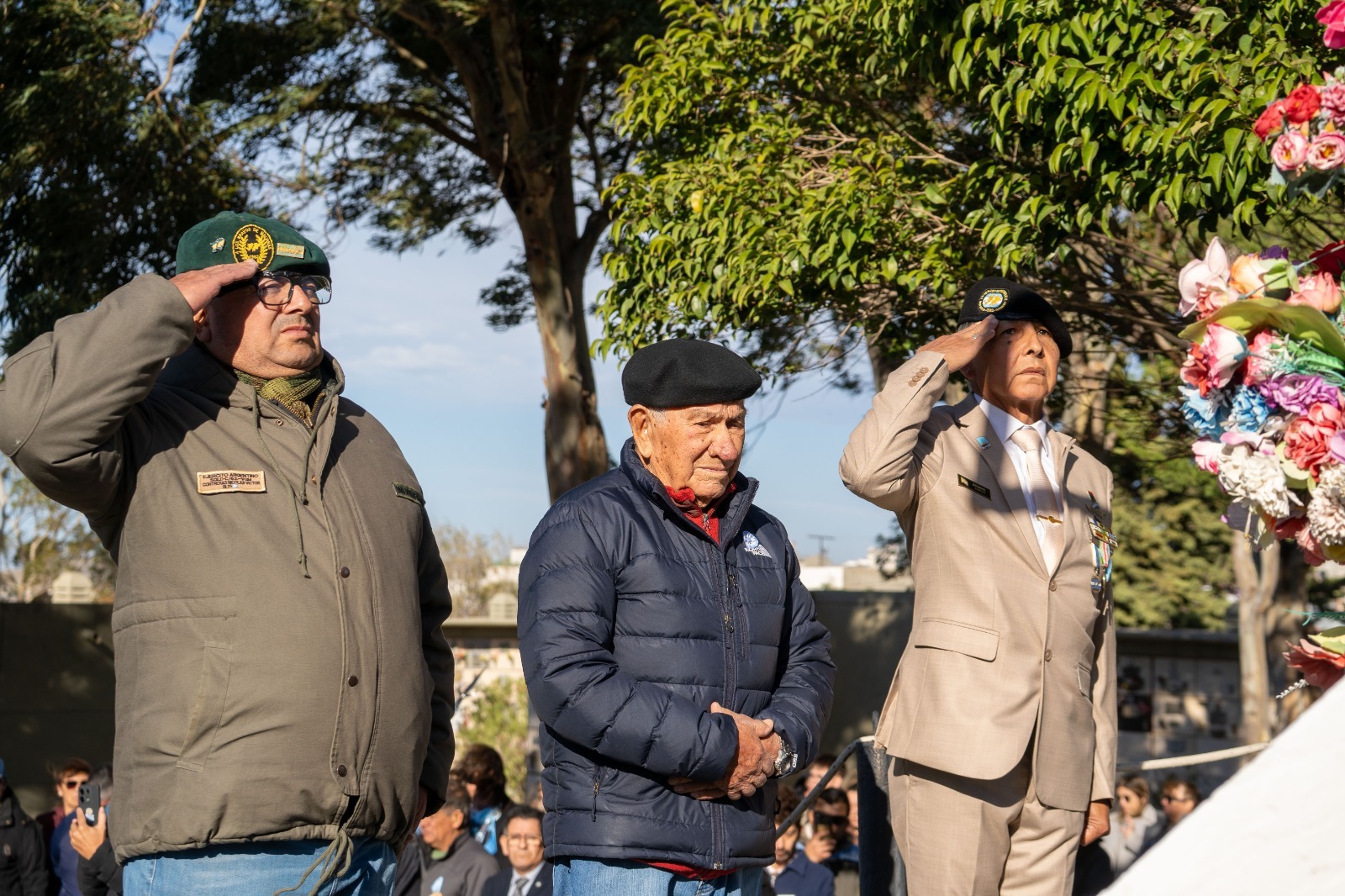 Desde el orgullo, Humberto Almonacid con 92 años, es una presencia infaltable en cada actividad vinculada con Malvinas. El padre de Mario, el primer soldado comodorense caído en combate durante la toma de las Georgias del Sur, el 3 de abril de 1982, en el inicio mismo del conflicto bélico, mantiene un espíritu inquebrantable y acompaña cada 2 de Abril a los Veteranos de Guerra.