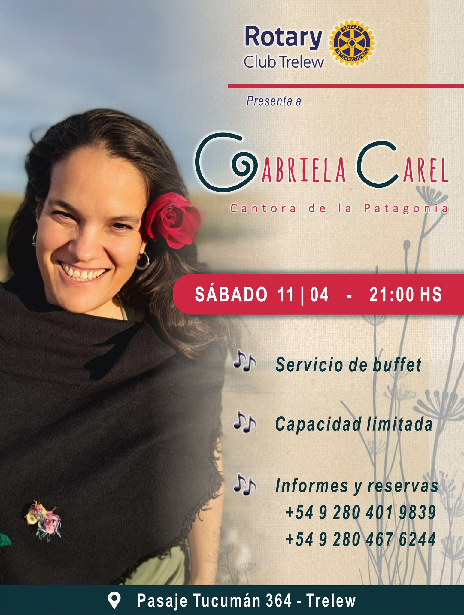 Como parte de su agenda en la región, Gabriela Carel también se presentará el domingo 12 de abril a las 17:30 horas en la Fiesta del Citrón, en la localidad de Gaiman. Una fiesta que celebra este fruto emblemático, revalorizando su tradicional cultivo. Las actividades incluyen espectáculos en vivo, feria de artesanos, cocina en vivo con dulces y conservas de citron, y actividades deportivas, atrayendo turismo cultural a la región valletana.